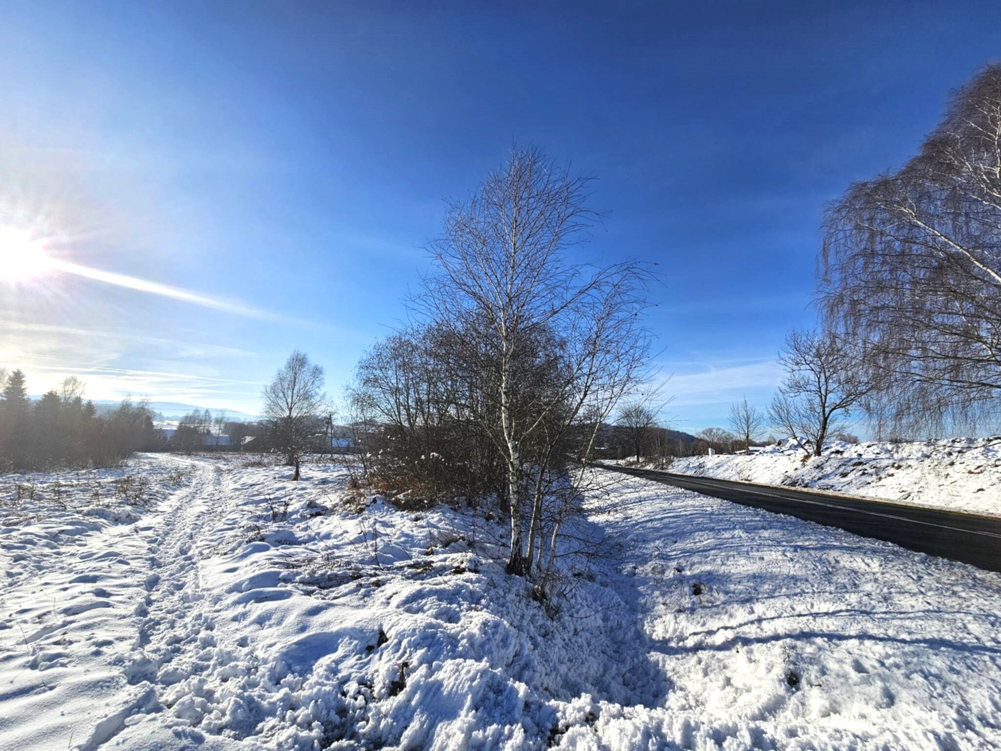 Działka o powierzchni 2.442 m2, w kształcie trójkąta, bardzo dobrze nasłoneczniona, płaska, posiada dostęp do drogi publicznej.