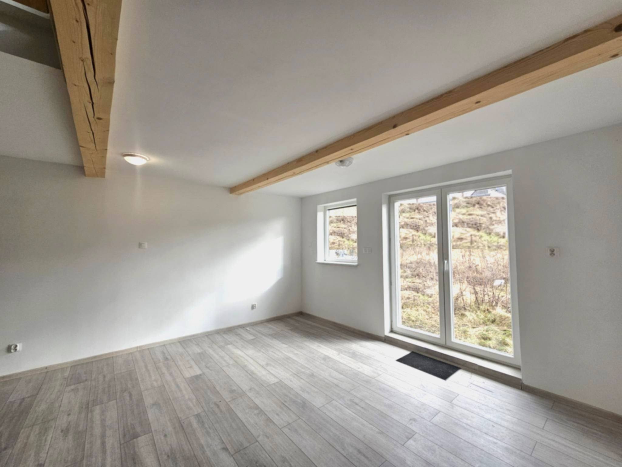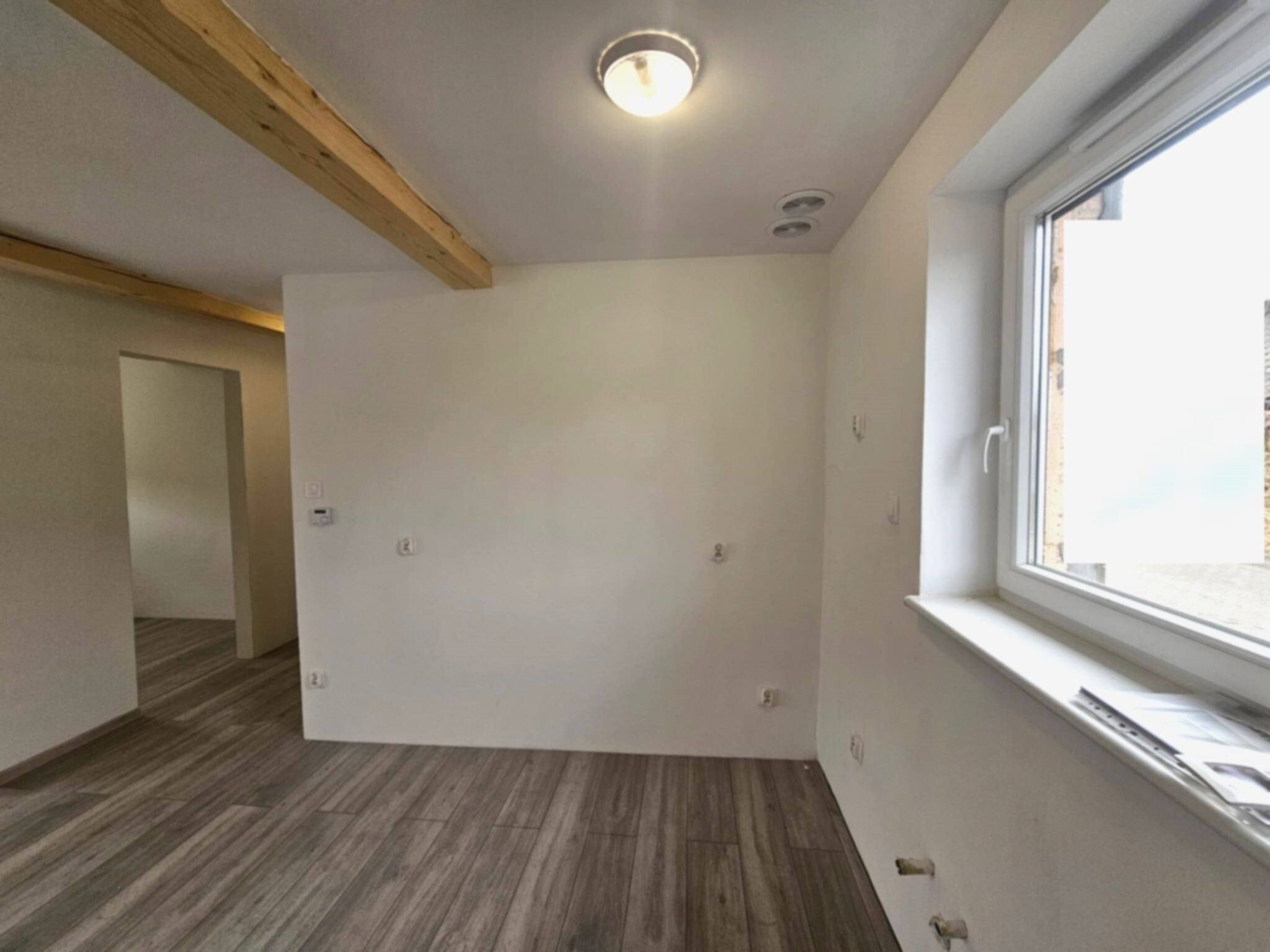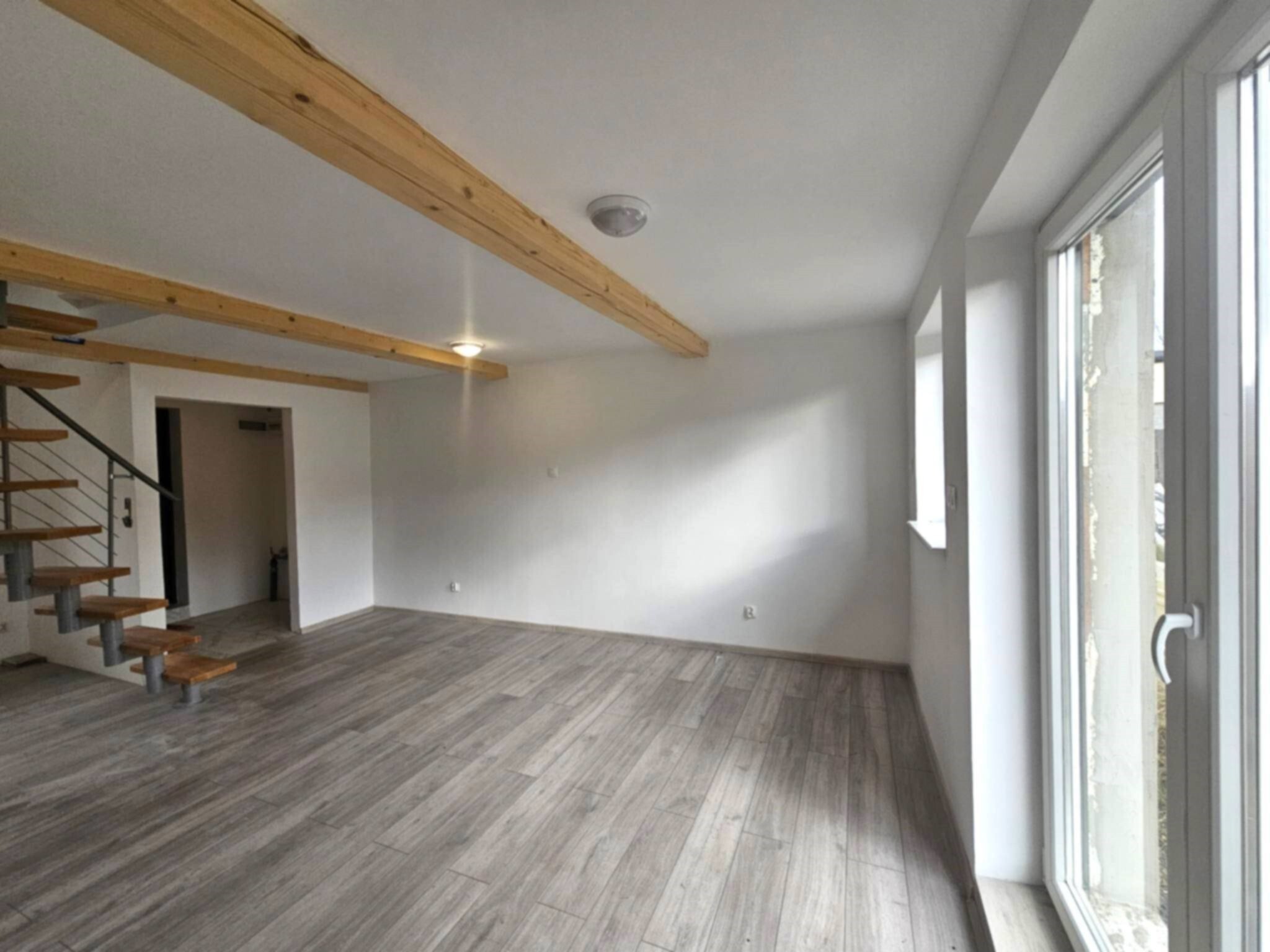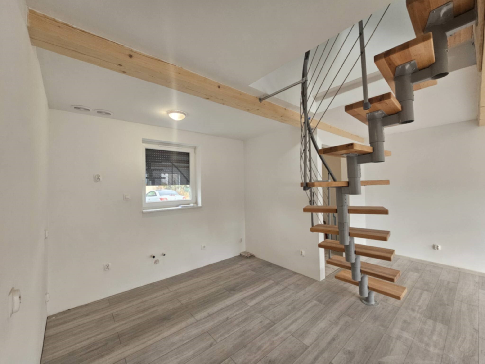 - parter: otwarty salon z aneksem kuchennym i wyjściem na taras, gabinet, łazienka z oknem, przedpokój z miejscem na szafę oraz wiatrołap z miejscem na kolejną- szafę. -